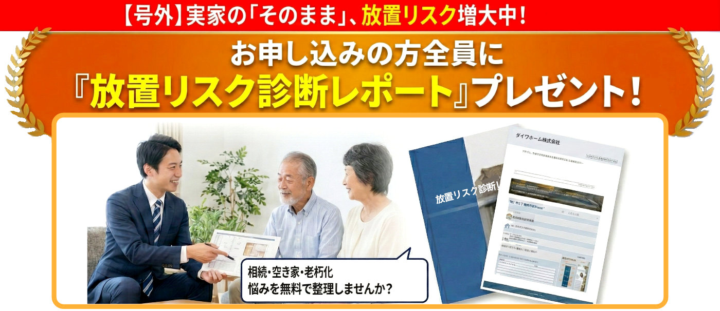 チラシの「物件健康診断」を見て、まずは今の状態を客観的に知るために無料相談をお願いしました。プロの目線で将来の修繕リスクや維持費を数字で示してもらったことで、頑固だった兄弟も「このままではいけない」と納得し、売却を決意することができました。